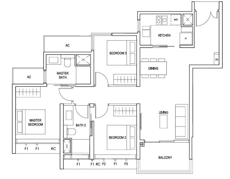 3 Bedroom + Study 1184 Sqft