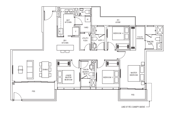 | 4 Bedroom (P) | 1356 - 1410 | 178 |