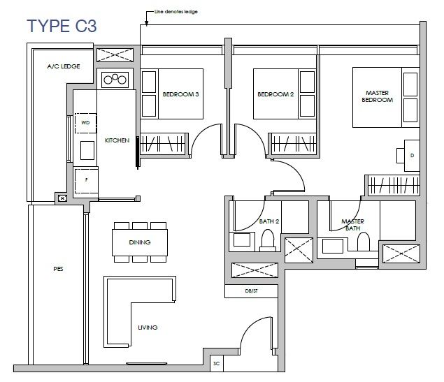 3 Bedroom + Guest (Premium) 1259 Sqft